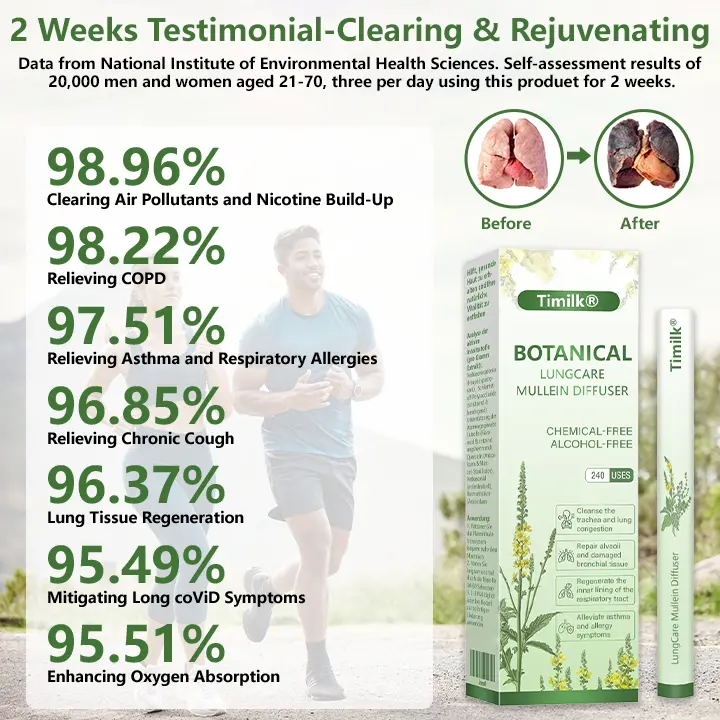 Escuche a más de 150 000 clientes satisfechos que limpiaron sus pulmones con el difusor de gordolobo Timilk® Botanical LungCare
