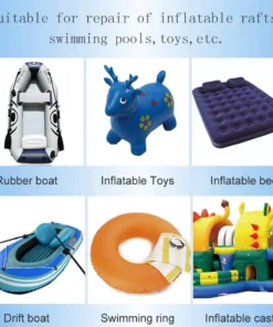 4. Espere unos 10 minutos o utilice un secador de pelo para soplar el parche recubierto con pegamento, así como la parte pegada del producto defectuoso, hasta que el pegamento no es pegajoso y está un poco seco, pegue directamente el parche precortado en el lugar que necesita el parche, golpee fuerte con un objeto plano. Después de presionar durante 12 horas con un objeto pesado, vuelva a inflarlo y usarlo.