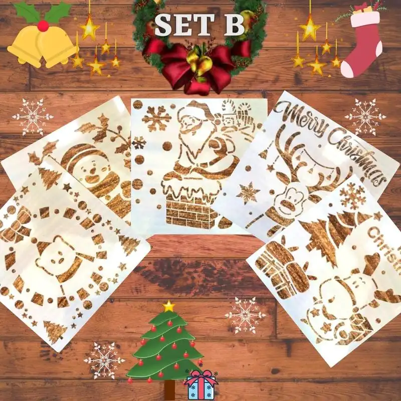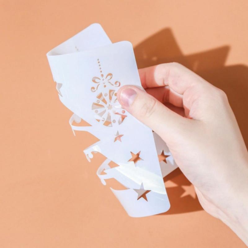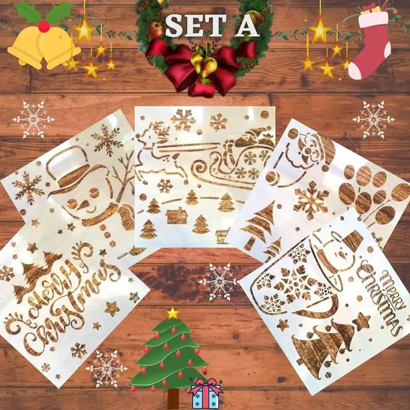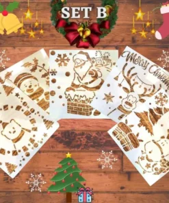 Inclusión/es del paquete: 1 juego. Plantilla de spray de nieve navideña InstaDecor (5 piezas)