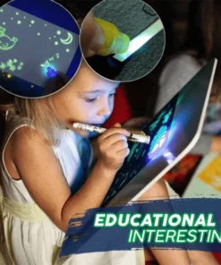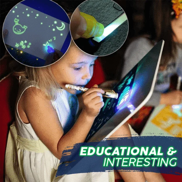 - Encienda los bolígrafos luminosos LED incluidos y comience a dibujar o escribir en la superficie del tablero.