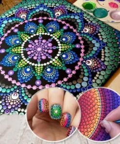 Inclusión del paquete: 1 juego de herramientas de punteado de mandala (incluye 5 varillas acrílicas, 4 herramientas de punteado de doble cara, 6 pinceles, 1 paleta)