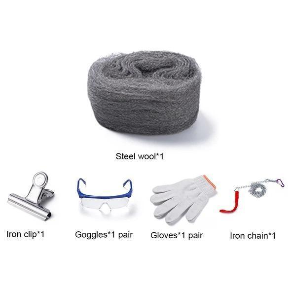 1 Un rollo de lana de acero, Un batidor, Un alambre flexible y un alicate, Un encendedor o cerillas
